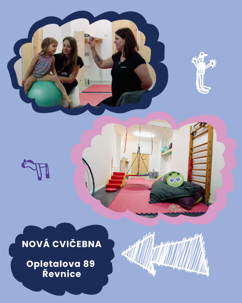 V lednu 2025 jsme otevřeli v Řevnicích novou cvičebnu pro děti s možností fyzioterapie a ergoterapie. V cvičebně o vás pečuje tým odborných ergoterapeutek a fyzioterapeutka.
